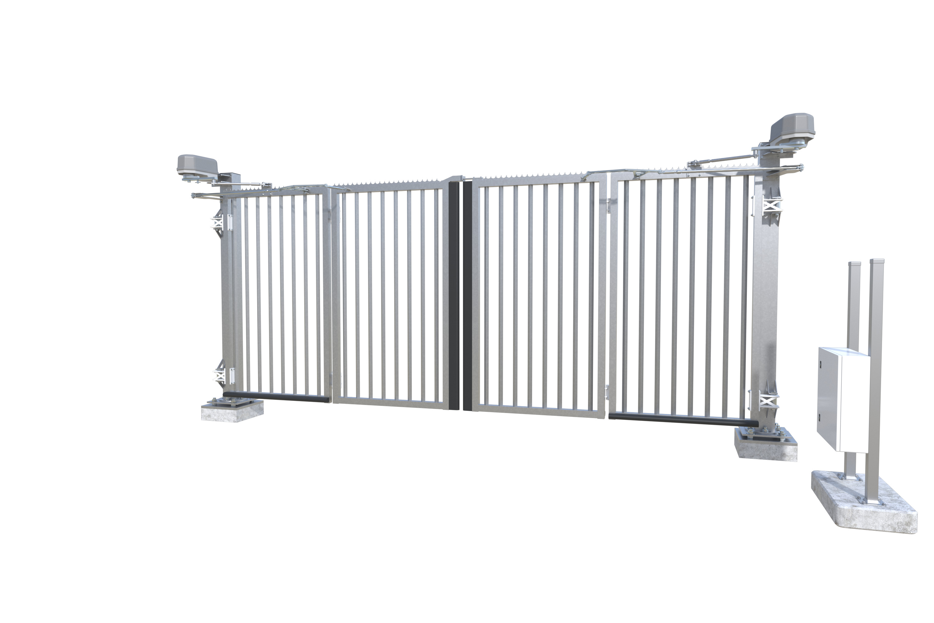 De poort wordt volledig voorgemonteerd geleverd en is voorzien van een unieke scharnieroplossing met een aangepaste aandrijving. Deze combinatie garandeert een soepele werking, zelfs bij lage temperaturen, sneeuw of ijs. Het robuuste ontwerp maakt de poort dus zeer betrouwbaar, ongeacht de omstandigheden.